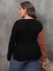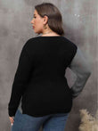 Get cozy in our Plus Size Two-Tone Surplice Neck Sweater. With its unique design, this sweater adds a playful twist to your winter wardrobe. The surplice neck adds a touch of elegance while the two-tone colors keep it fun and lighthearted. Perfect for those who want to stay stylish while staying warm!