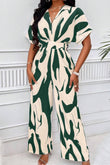 Printed V-Neck Short Sleeve Wide Leg Jumpsuit