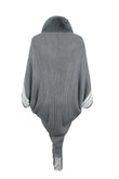 Striped Fringe Detail Long Sleeve Poncho