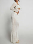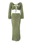 Tied Long Sleeve Top and Skirt Cover Up Set