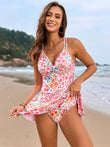 This one-piece swimwear features a twisted front design with crisscross double spaghetti straps, offering both style and secure support. Its flattering fit enhances your silhouette while providing comfortable wear for all-day confidence at the beach or pool. Perfect for those seeking a blend of elegance and dependable support in swimwear.