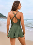Twisted Front Crisscross Double Spaghetti Strap One-Piece Swimwear