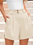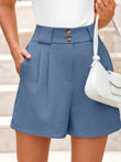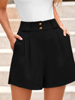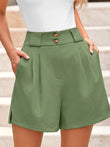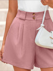 Upgrade your summer wardrobe with our Two Button Wide Waistband Shorts! Made with a comfortable and durable fabric, these shorts feature a wide waistband with two buttons for a secure and stylish fit. Perfect for any occasion, these shorts will become your go-to choice for a cool and trendy look.
